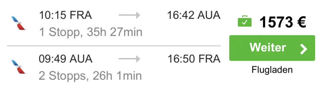 Dort hin kannst du nun in der bequemen Business Class ab Deutschland reisen. Also ganz ohne Umwege. Denn es geht direkt ab Frankfurt los und es wird mit American Airlines geflogen.