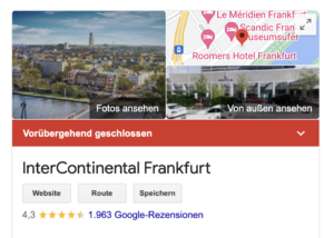 Intercontinental Frankfurt aufgrund von Sanierung geschlossen